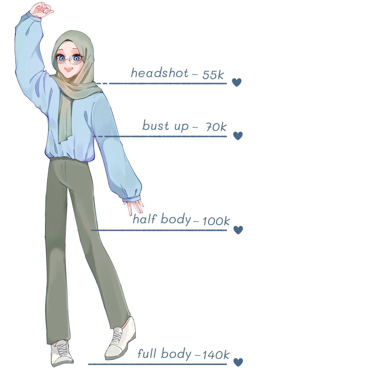 ✦ untuk full body tipe normal, aku hanya open untuk 1 chara dalam 1 kanvas.